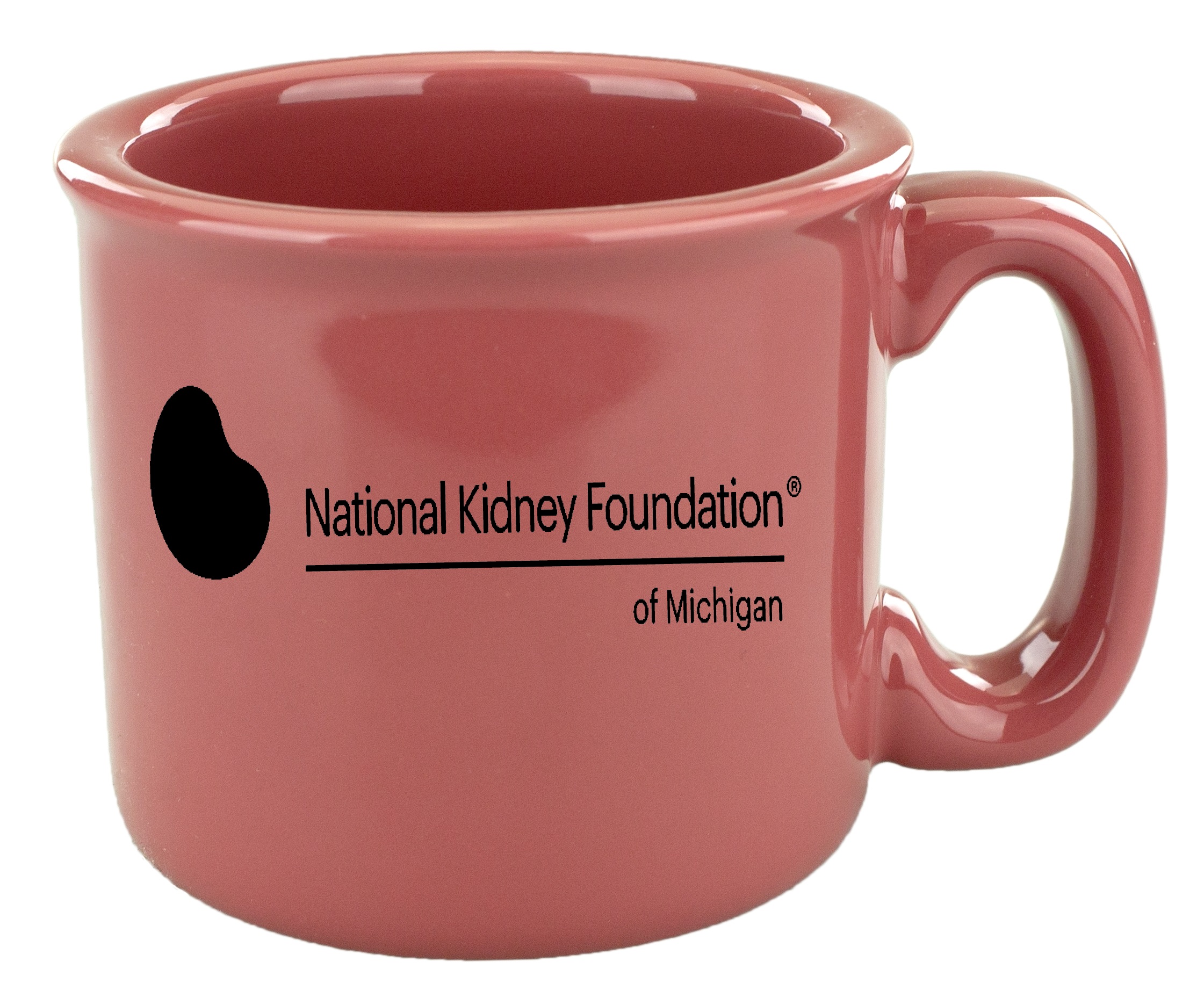 Solid glossy color inside and outside on this campfire shaped mug.